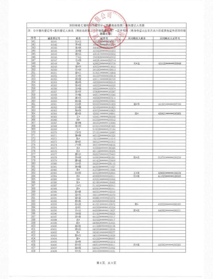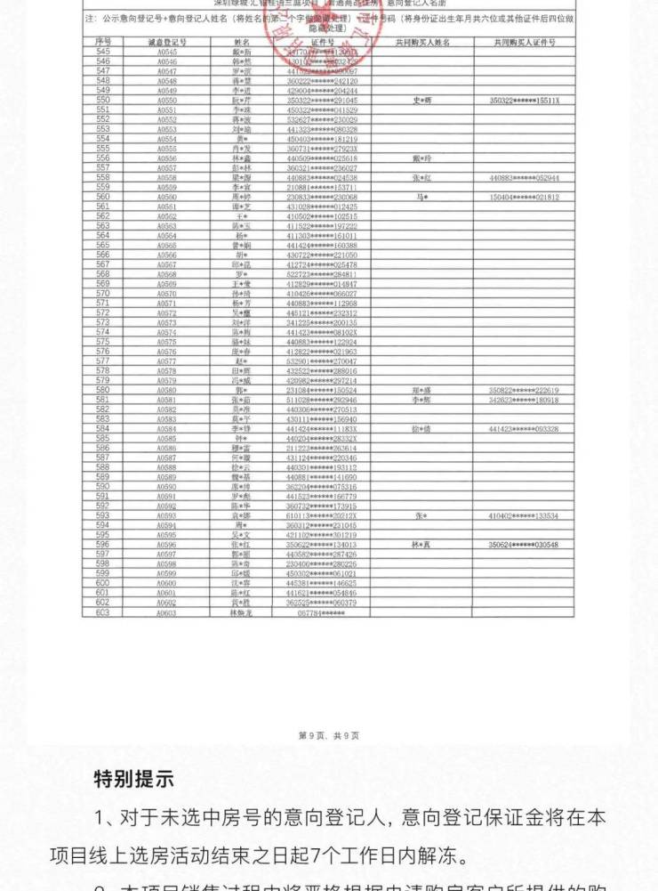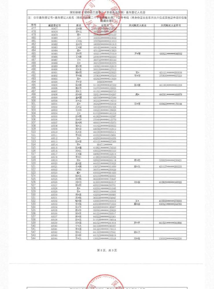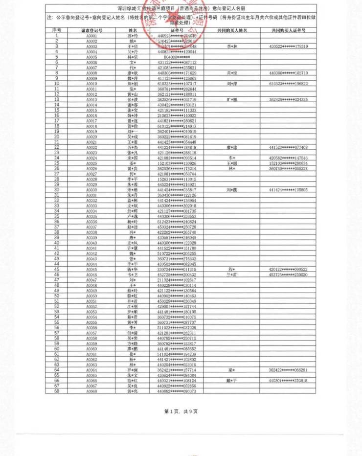 603批客,光明绿城桂语兰庭登记人名册公示,今日公证摇号