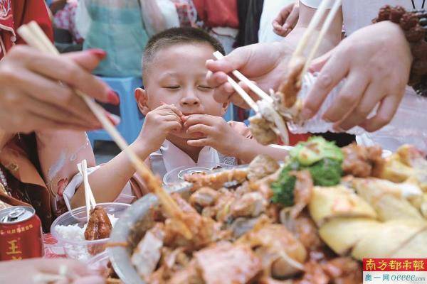 傍晚时分,在西乡土生土长的80岁邓奶奶,和几个老伙伴组成闺蜜团,早早地来到北帝古庙前占位,等待“千岁盆菜宴”开席。今年的“盆菜宴”顺着真理街,1200张圆桌铺排而开,每桌10人,名副其实的万人宴。下午五点多,舞狮开场,锣鼓喧天,这样热闹的场景令邓奶奶非常兴奋。她不时鼓掌,不时和身边的人热烈地讨论着,她说“仿佛回到了年轻的时候”。