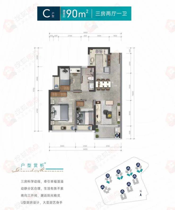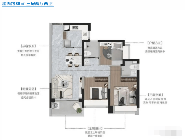 配售房源:共21套,其中:两房户型7套,建筑面积约69-70平方米;三房户型14套,建筑面积约88-90平方米;