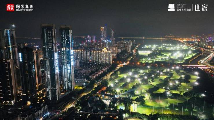 随着启幕仪式的高潮迭起,现场与会来宾随着无人机的视野,遨游在深湾中轴的上空。环视这两座约250米的塔标建筑,一览无遮挡的首排高尔夫景观,13.7公里大沙河生态长廊,南望深圳湾,东接华侨城,目之所及皆风景。凝聚了深圳40余年发展精粹的深湾三公里,当晚华灯璀璨,灯火通明的世家双子塔标,成为了中轴之上最耀眼的风景线。
