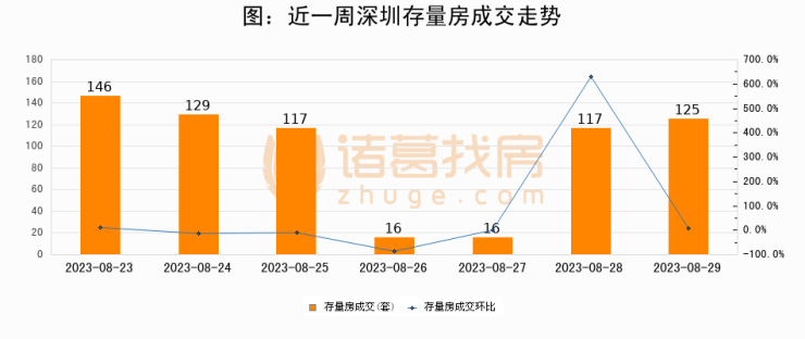 从存量房来看,2023年08月29日深圳存量房单日成交125套,比昨日增加8套,环比上涨6.8%。从近一周存量房成交来看,深圳存量房日均成交套数为95套,08月29日单日成交125套,高于近一周平均水平31.6%。