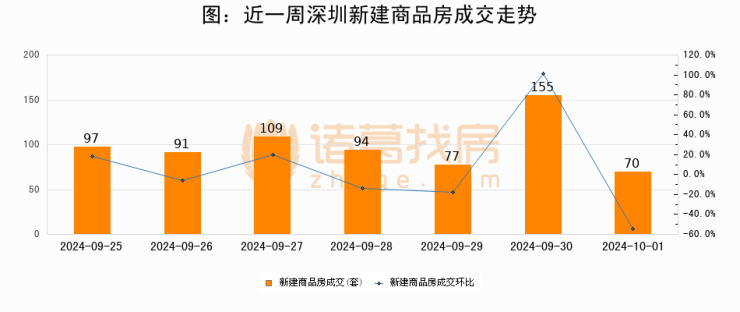 【深圳成交日报】10月01日新房成交70套、二手房19套;涨价房源579套