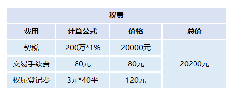 假设这个200万的房子约40平,还不是什么商务公寓,而是普通住宅,那么契税按“90平以下的普通住宅征收总房款1%”的标准征收。