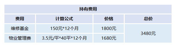 那么这样一个40平的新房持有3年,你花费的成本是: