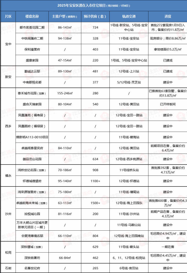 而2025年,宝安还能不能稳坐一哥,其中很重要的一个指标,也是看2025年的供给端给不给力。