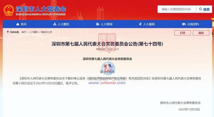 12月30日,深圳市第七届人民代表大会常务委员会第十四次会议对《深圳经济特区房地产转让条例》有关规定作如下决定:暂时停止适用《深圳经济特区房地产转让条例》第三十四条第一款第四项、第三十六条、第三十七条的规定。…