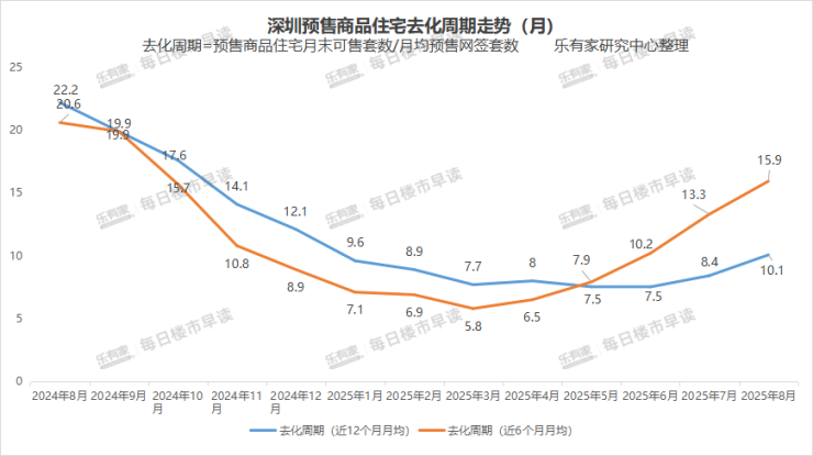 乐有家分析,按近12个月一手预售住宅月均去化速度(月均3206套)计算,深圳去化周期为10.1个月。
