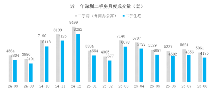 8月深圳二手房网签量虽然环比也是跌的,但却还有2个涨的数据: