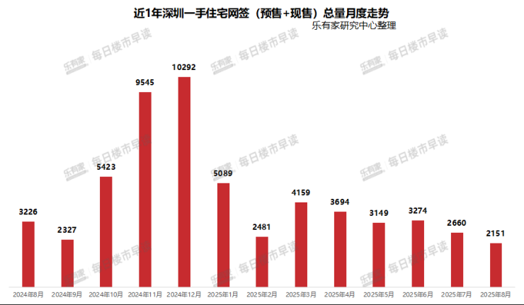 乐有家研究中心发布的数据显示,8月新房网签预售+现售总量是2151套,不仅低于今年春节月2月的成交量,甚至创下了近一年新低。