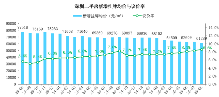 另外,挂牌价同样下跌了2.3%,新增挂牌均价61289元/㎡。