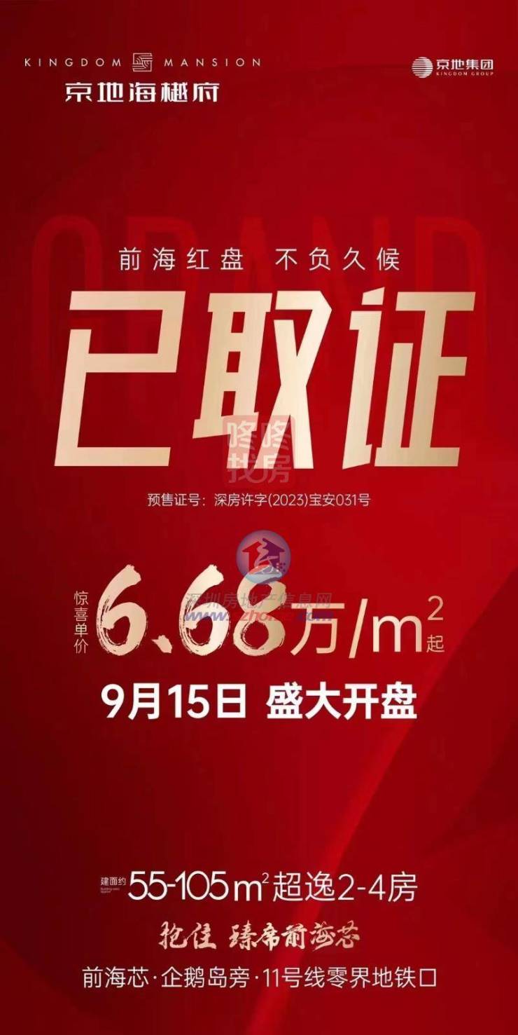 宝安新盘京地海樾府已取证,推55-105平336套住宅,6.68万/㎡起!