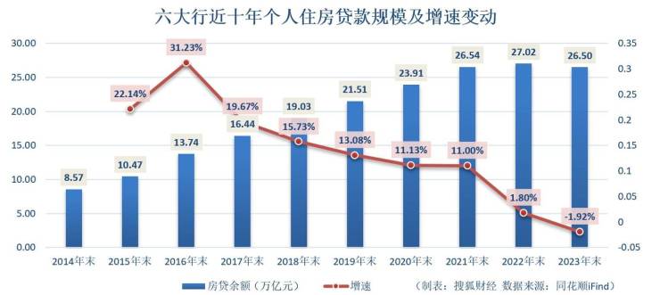 据最新年报,截至2023年末,六大行个人住房贷款规模合计为26.5万亿元,较上年末减少了约5200亿元。