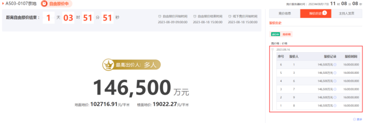 当然,目前各地块自由报价仍在进行,最终具体的房企报名情况以开拍时现场公示为准。