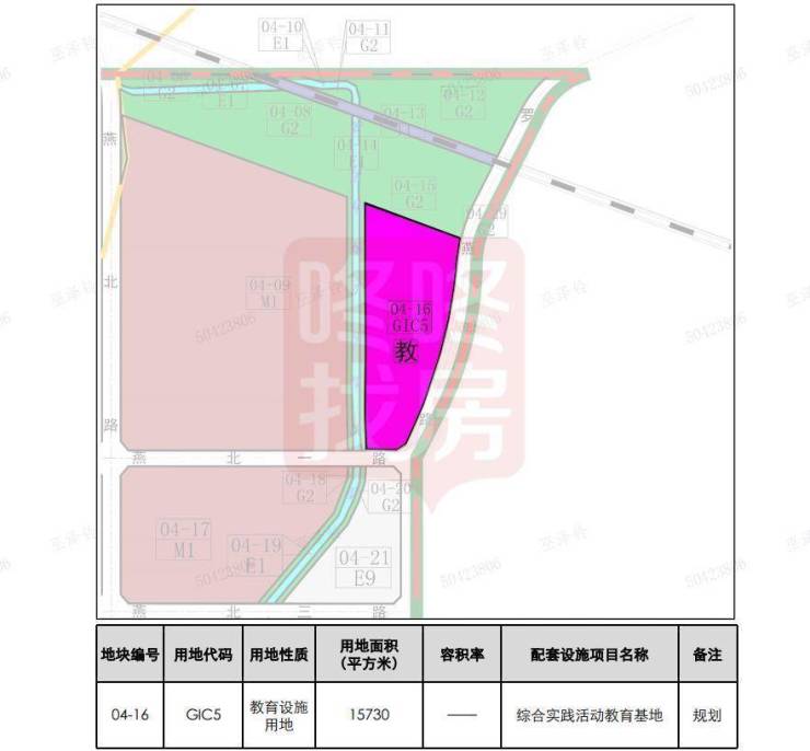 深圳市规划和自然资源局宝安管理局发布[松岗燕川地区]法定图则04-16地块规划调整的通告,新增一综合实践活动教育基地,用地面积15730平方米。