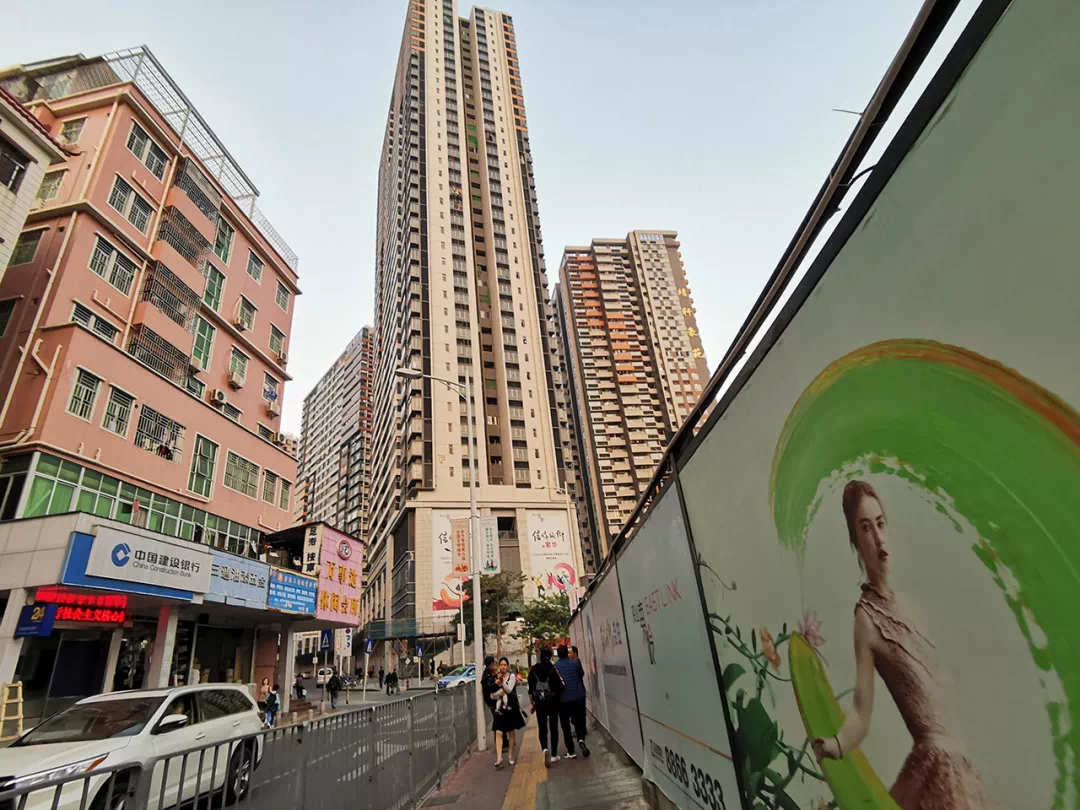 这里的城中村已经在新楼盘的夹攻下,地盘日益缩小。虽然,街道、店面、菜市场,走进去的味道都是和其他城中村无异。但是拍照片,很难找到没有高楼的背景。站在深南中路边,面对黄贝岭牌坊,右侧就是黄贝岭网红炸子鸡新楼盘“深业东岭”和靖轩豪苑,左侧已经被夷为平地,黄贝岭旧村改造项目(04-01地块)塔吊林立,工程简介上显示,竣工时间为2022年1月31日。周边,还有文锦花园旧改、华润湖贝旧改、工纺大厦旧改。