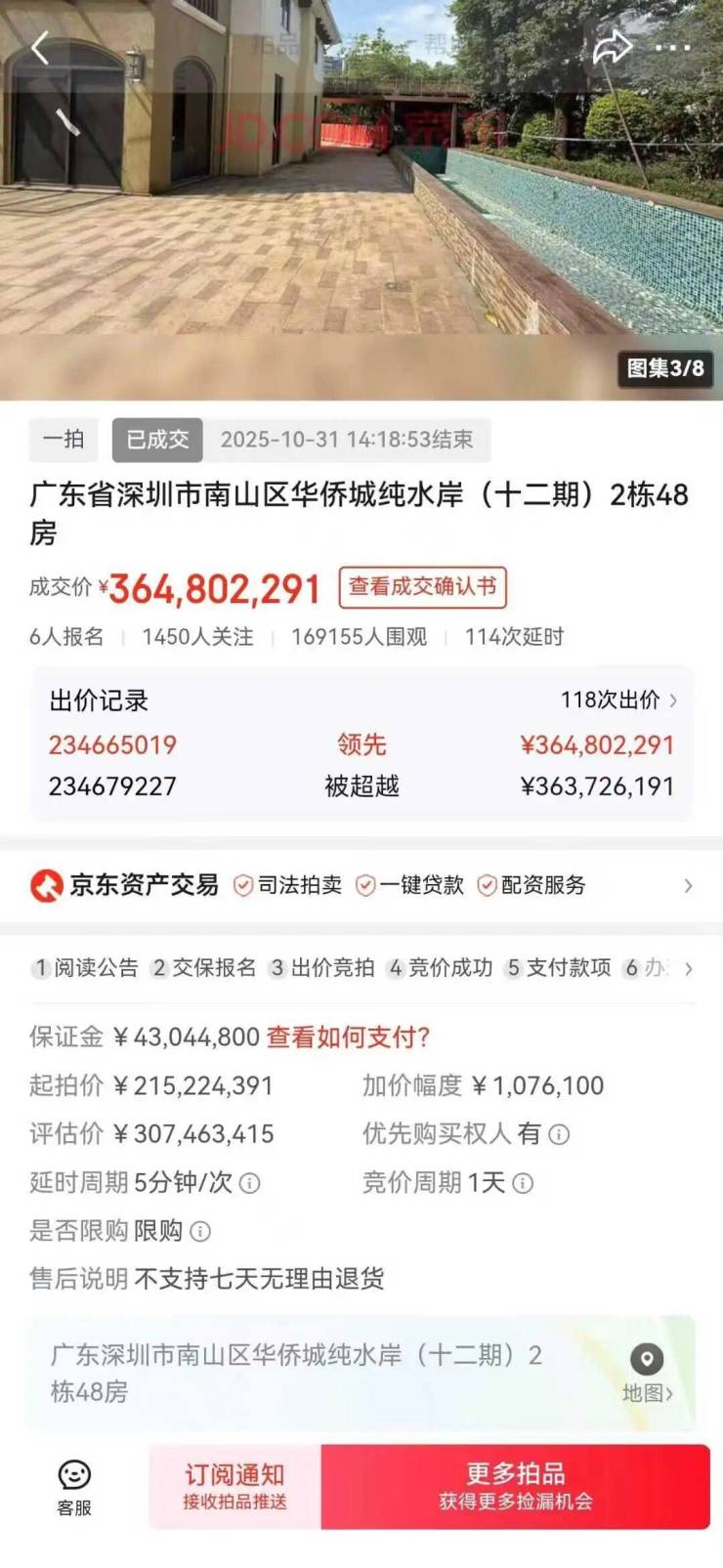 深圳“纯水岸墅王”成交,3.65亿刷新全国法拍纪录