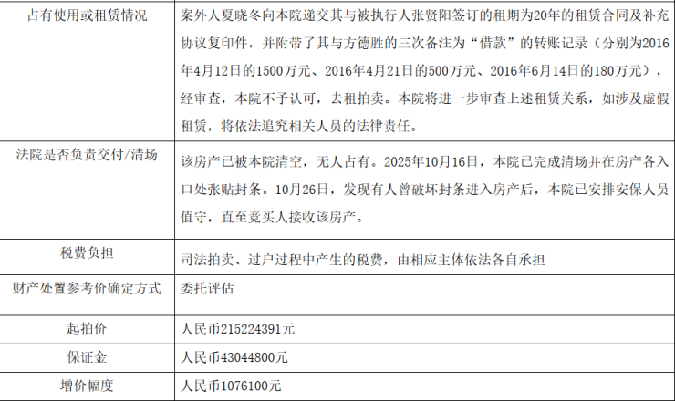 2024年当时二手市场挂网价格是6个亿,后来降价到5.5亿多个版本,直到日前被法院公开执行挂网拍卖。