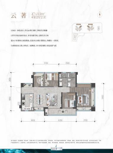 该项目主力产品为建面约80㎡-113㎡的精装三至四房,采用LDKB一体化和联动式中西厨设计,强调高拓实用性。同时,该项目还有全系270度奢景视野,113㎡户型更是做到了环绕式三面飘窗设计,可以享受360度环幕视野,并且拥有超14米舒阔南向五开间,收纳空间约为27.55立方米,相当于765个20寸的登机箱容积,而且还首创板块内窄边吊顶,实用性拉满。
