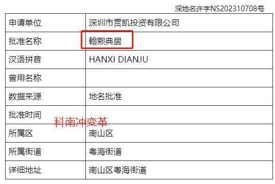 资料显示,项目申请单位为深圳市贯凯投资有限公司,批准名称为翰熙典居。
