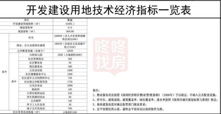 规划容积369100㎡,其中住宅249950㎡(含人才住房和保障性住房32500㎡),商业、办公及旅馆业建筑106530㎡(含商业文化设施不低于5330㎡);公共配套设施(含地下)12620㎡(含12班幼儿园3200㎡、占地面积3600㎡,公交首末站2900㎡等);另配建社区体育活动场地占地面积1500㎡。