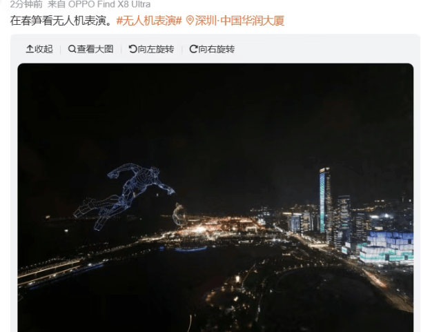 但就在同一片夜空下,有人在人才公园人挤人,有人在公司的免费观景位“主动加班”。