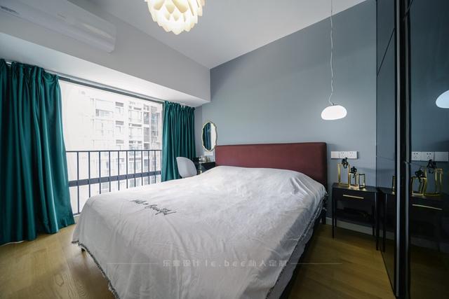 主卧里墨绿与酒红的和谐相处,像极了甜腻恩爱的男女主。