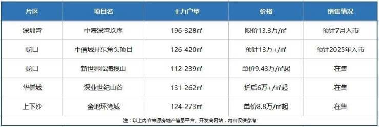 目前深圳市面上也有部分相对优质的一手豪宅,例如富人们翘首以盼的深圳湾中海深湾玖序,蛇口的中信城开东角头项目;现阶段当红热销的华侨城片区深业世纪山谷,福田上下沙的金地环湾城等等。