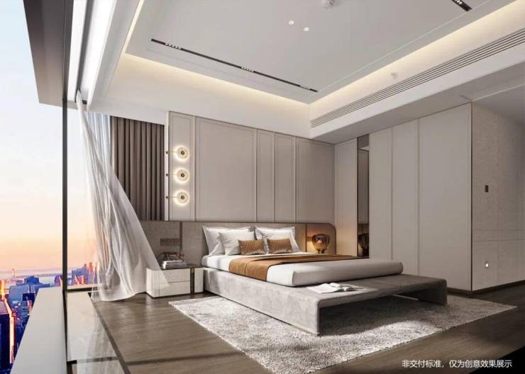 居住尺度上,约3.3米层高,空间舒适;3阳台设计,其中景观阳台长达7.8米,加上卧室270°转角飘窗,全屋的景观面足足有近17米长,可俯瞰头排高尔夫+深圳湾双重景观,是华侨城片区绿视率最高产品之一。