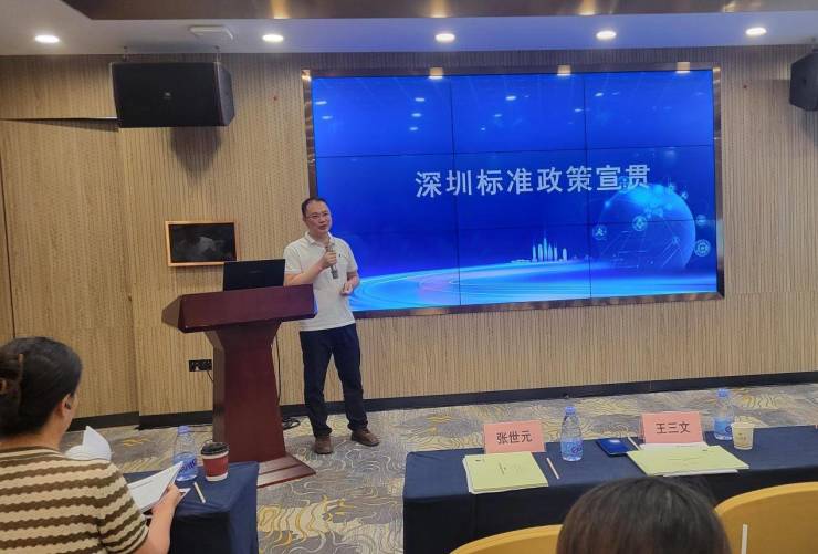 深圳市场监管局标准处科长王三文向与会人员作了深圳标准政策宣贯。他详细介绍了深圳标准出台的背景、深圳市支持标准工作的政策举措以及获取标准相关信息的渠道,鼓励大家学习标准知识,积极参与深圳标准建设,为深圳标准事业添砖加瓦。