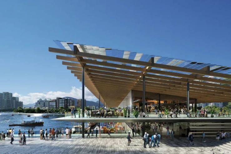 KENGO KUMA & ASSOCIATES, INC. / 香港华艺设计顾问(深圳)有限公司 / 深圳诺丁汉可持续发展研究院有限公司联合体提交的方案 “檐下•渔市”脱颖而出,为最终优胜方案。