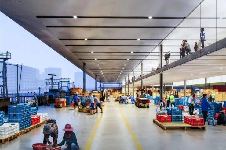深圳文化起源自传统的渔村,在深圳中心地区营造的渔港设施不应该仅仅是一座产业建筑,市民来到这里,可以参观体验渔业工作区,可以购买到新鲜安全的渔获,也能享用到美味的海鲜的。方案试图打破产业空间在城市空间中消极的固有印象,将蛇口渔港作为一个文化锚点,以渔业为核心,营造一个独特的城市空间,让市民在日常休闲散步、买菜购物的同时也能感受到渔港整齐规范、卫生高效的现代化产业魅力。