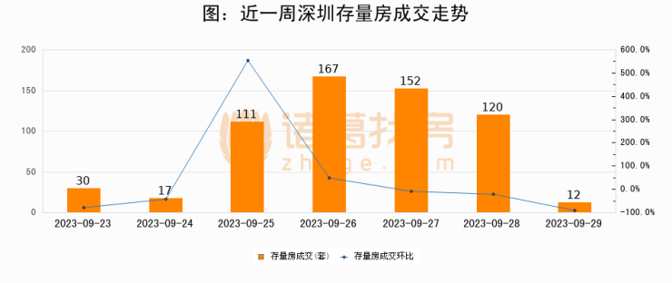 从存量房来看,2023年09月29日深圳存量房单日成交12套,比昨日减少108套,环比下降90%。从近一周存量房成交来看,深圳存量房日均成交套数为87套,09月29日单日成交12套,低于近一周平均水平86.2%。