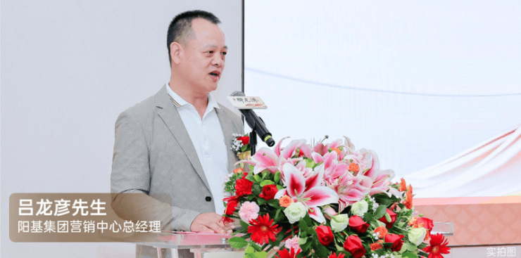 阳基集团营销中心总经理吕龙彦在致辞中,回顾了阳基自1997 年以来,28年与深圳同行共进,先后开发了阳基天御山、阳基御龙山等众多项目,深刻参与并见证了这座城市的每一次飞跃。