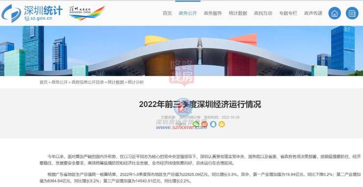 近日, 深圳市统计局发布《2022年前三季度深圳经济运行情况》。