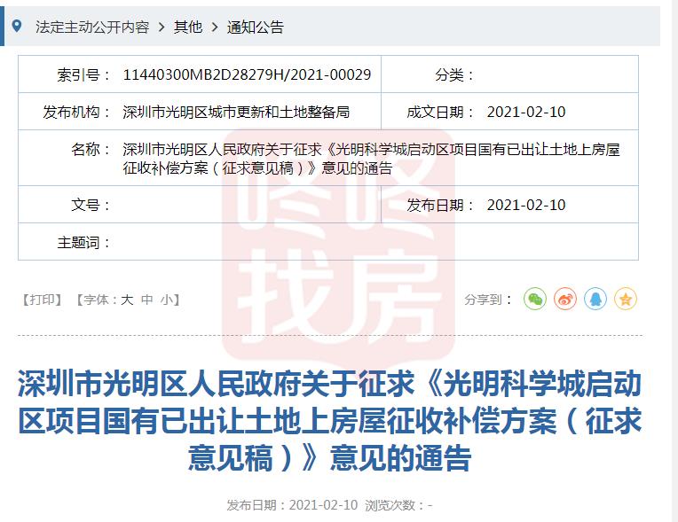 光明科学城启动区项目,房屋征收补偿方案发布!