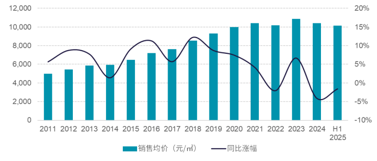2025年上半年,全国新建商品住宅销售均价为每平方米10,128元,同比增速较一季度由正转负下降3.2个百分点至-1.6%;与2024年下半年相比,均价亦环比降了4.0%。在当前的市场环境下,需求端信心和预期普遍较弱,通过“以价换量”等方式刺激吸纳市场需求仍是市场主流。在宏观经济及行业信心不足的背景下整体需求仍然表现疲软,同时也难以支撑价格的持续回升。