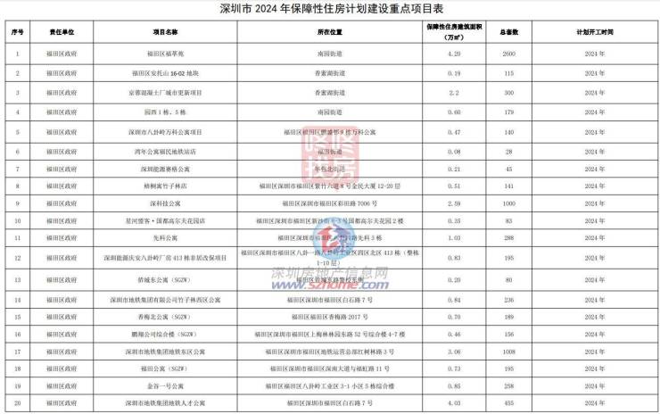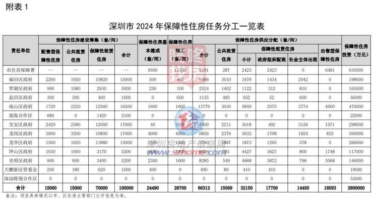 189个项目,深圳官方保障房建设重点项目!2024筹建10万套