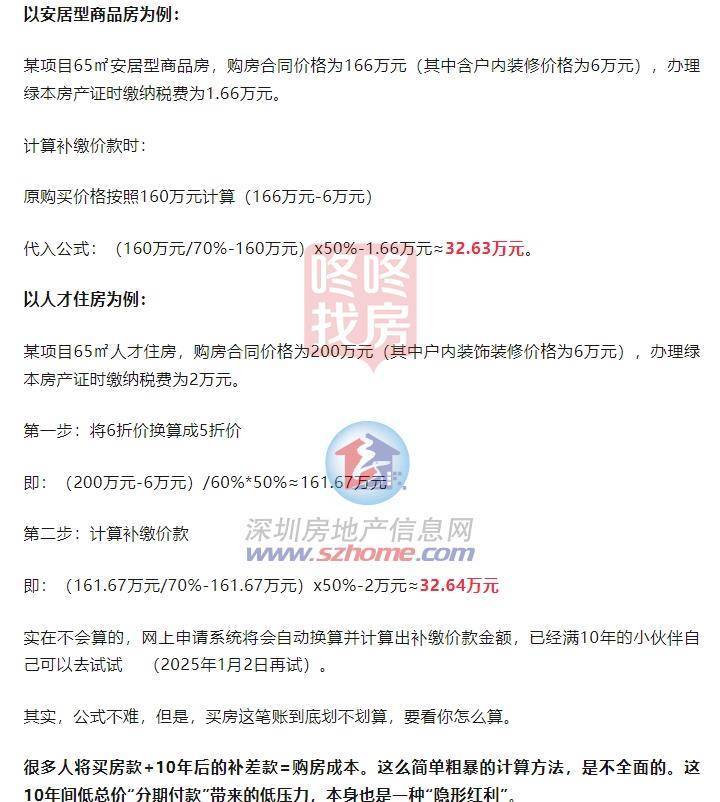 为提升服务效率,降低办事成本,自2025年1月2日起,购房人可登录深圳市住房和建设局官网,通过全流程网办的方式申请办理取得完全产权。网上申请系统将自动计算出补缴价款金额,为购房人提供便捷服务。同时,主管部门也将为不熟悉网上操作的购房人设置线下服务窗口,确保服务范围全覆盖。购房人可以根据自身需要随时提出申请取得完全产权,且补缴价款不会因为申请时间不同而发生变化,因此,购房人无须在政策正式实施后扎堆办理。
