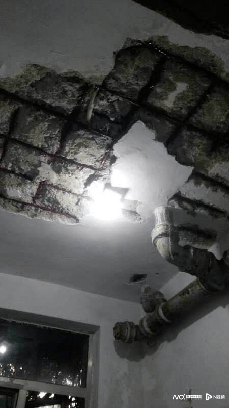 针对业主反映的情况,奥一新闻记者来到南威中心小区现场看到,小区多个房屋和楼道和楼板钢筋锈蚀严重,一户房屋顶部水泥块出现大面积掉落。此外,小区楼道天花板能看到裸露的钢筋,而在走道处能看到不少楼梯砖头出现松动。