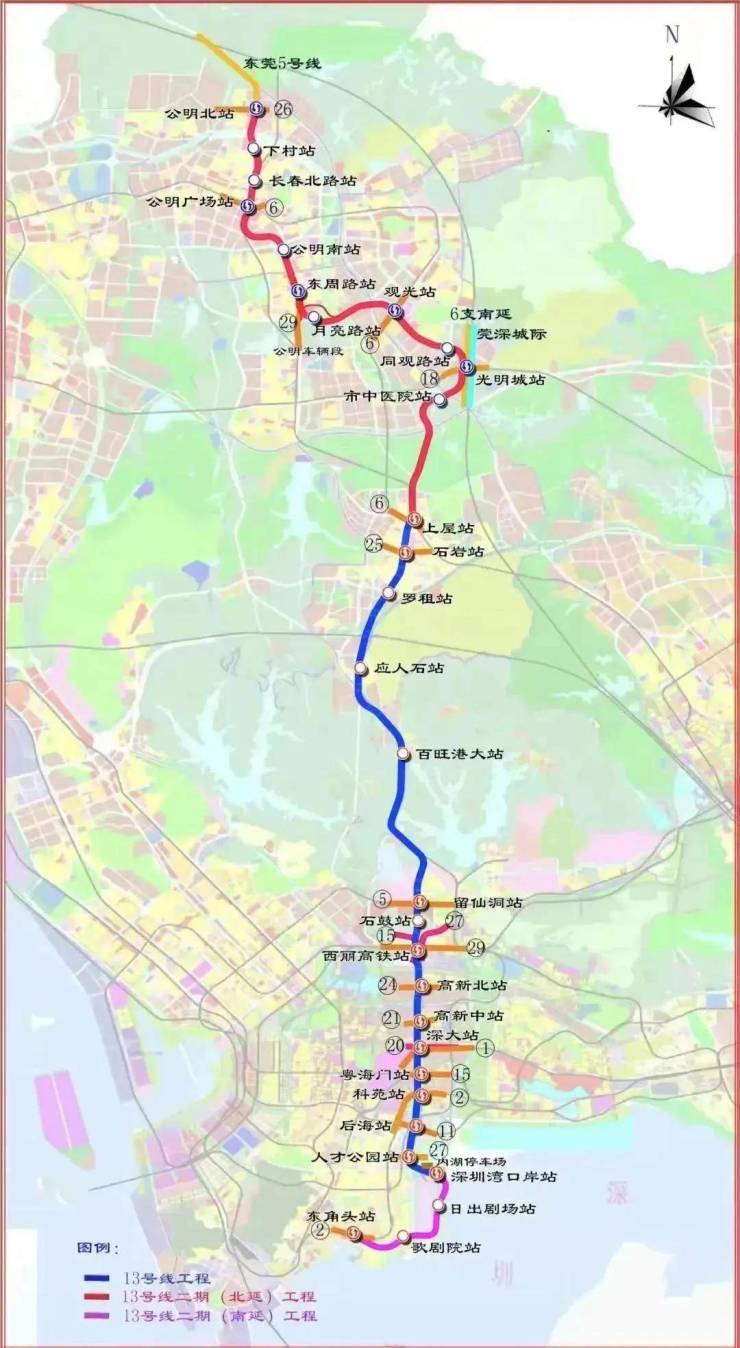 按照此前信息,应该是13号线北延与东莞5号线衔接,从光明区进入东莞南部。
