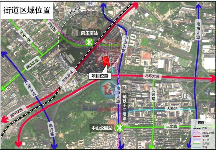 项目位于南山区南头街道北环大道与南农路交汇处,近地铁12号线同乐南站。
