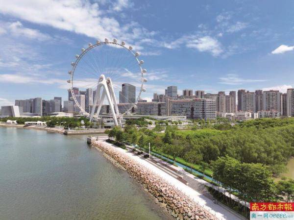 “湾区之光”作为宝安地标深受欢迎,该健步道则从“湾区之光”摩天轮处延伸,跨过新圳河巡河桥,全面连通宝安中心区与前海1公里海岸线,使前海湾岸线牵手相连,为市民拓展了更丰富的自然亲水体验和全新的摩天轮观赏视角。