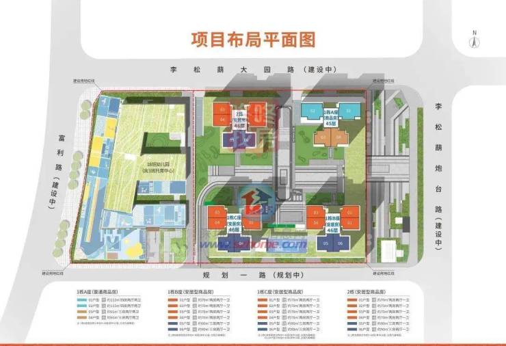 共有4栋住宅,共计896户,其中3栋安居房736户,1栋商品住房160户(45F,3梯4户)。另配建了一所18班幼儿园。车位920个,车位比超1。