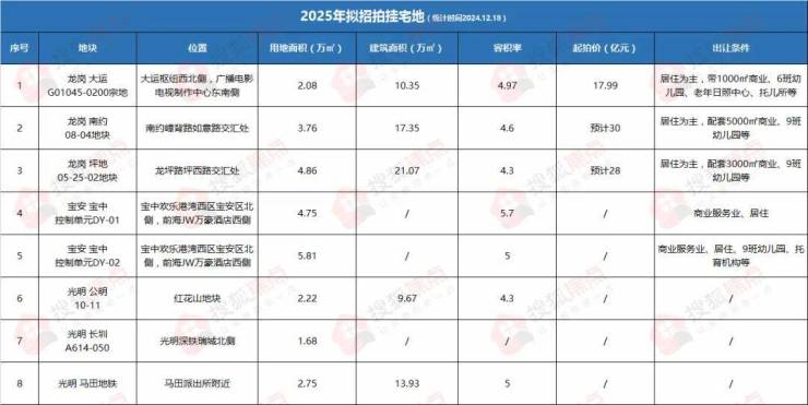 据@搜狐焦点深圳获知,除了已经公示的龙岗大运宅地外,还有7宗待出让的宅地已有部分信息,包括龙岗2宗、宝中2宗、光明3宗。(具体信息以官方最新公示为准)