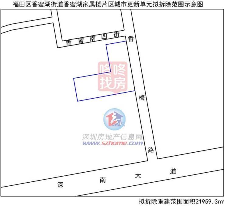 据公示信息,项目东临香梅路,南近深南大道,西靠香蜜湖度假村,北望红荔路,城市更新拟拆除范围用地面积21959.3平。