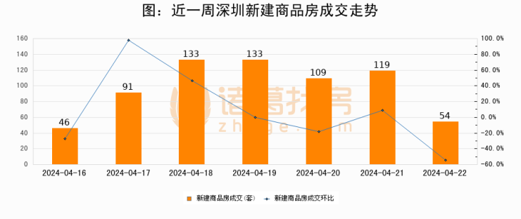 【深圳成交日报】04月22日新房成交54套、二手房205套;涨价房源39套
