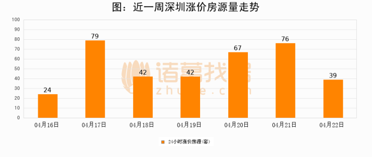 根据诸葛找房数据显示,深圳24小时涨价房源量为39套,较04月21日减少37套,环比下降48.7%。与此同时,涨价房源占比小幅回落,对于购房者来说是一个入市窗口期,购房者可抓住时机入市。
