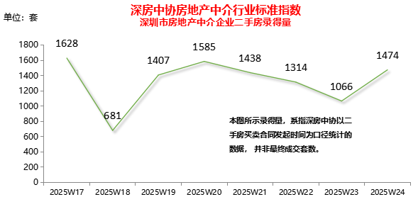 经深房中协统计,2025年第24周全市二手房(含自助)录得1,474套,环比增长38.3%。端午假期后,部分积累需求陆续释放,促使本周二手房录得量出现修复性回升。
