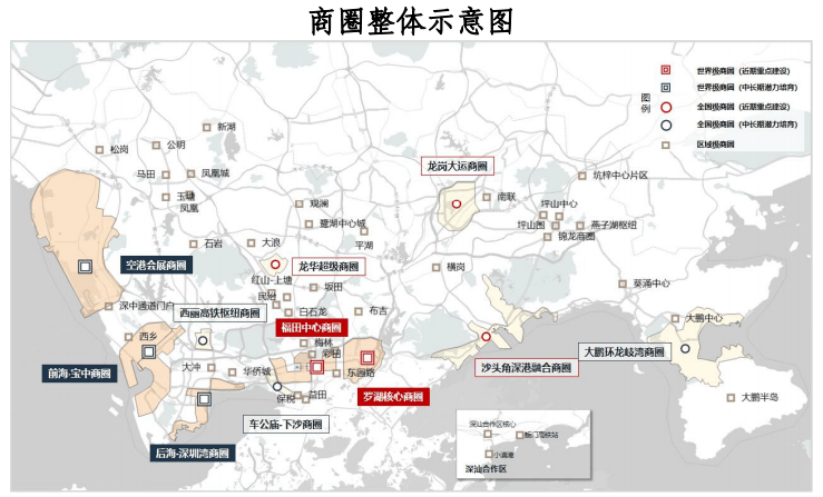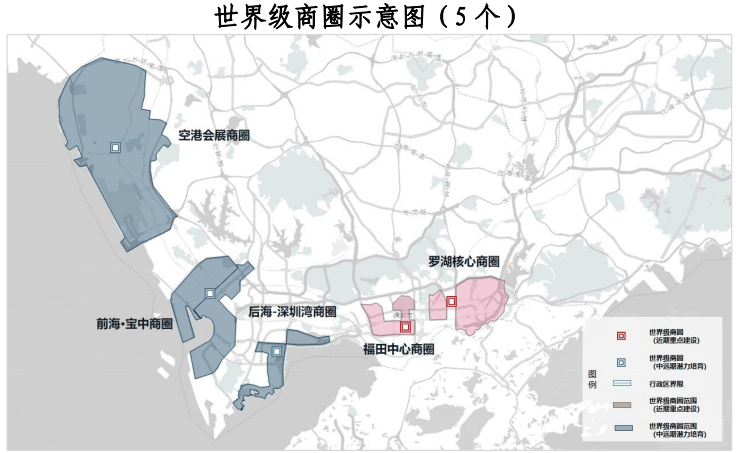 3个中长期潜力培育商圈,包括后海-深圳湾商圈、空港会展商圈、前海·宝中商圈。