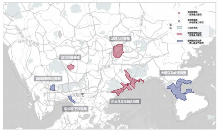 近期重点建设的全国级商圈,分别为沙头角深港融合商圈、龙岗大运商圈、龙华超级商圈 3 个 商圈。